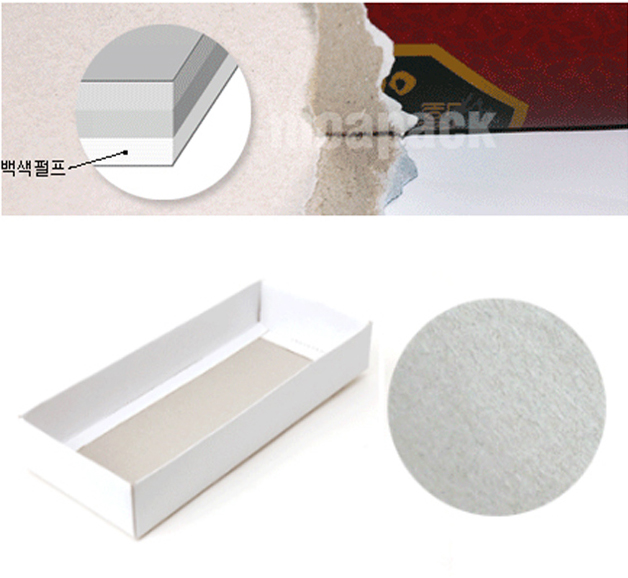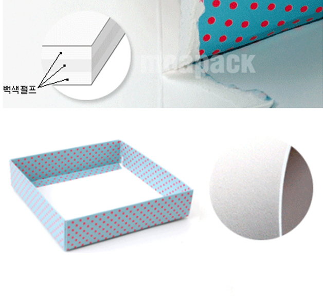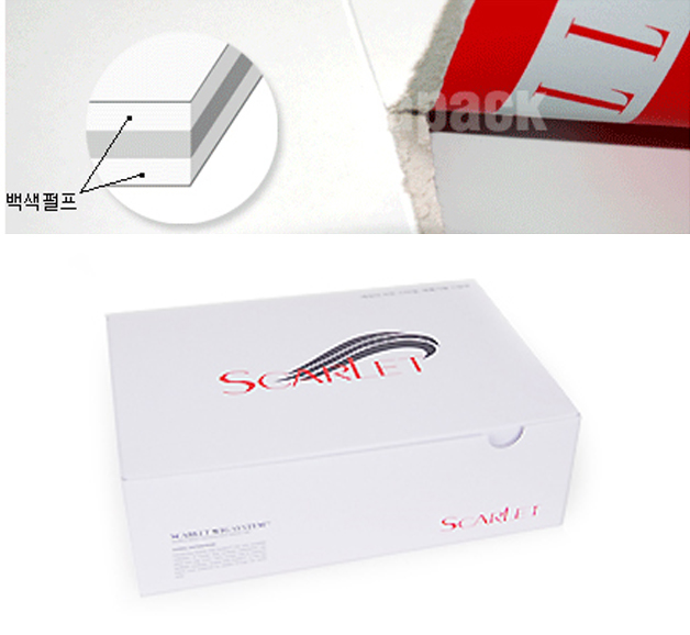 제품박스 제작시 가장 많이 사용되는 골판지로 대부분 E골+SC마니랄240g으로 제작.